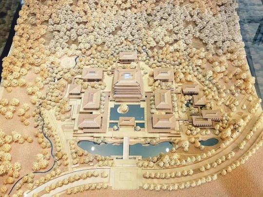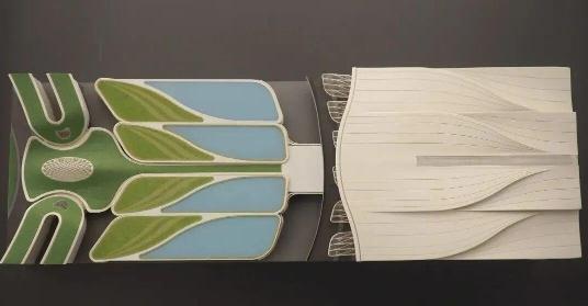 ▲由何镜堂设计的世博会中国馆模型,细致展现了二十四节气篆字与“新九州清晏”屋顶花园等设计细节。