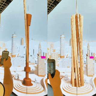 D-DENSITY(密度)通过竹筒屋原型,展示城市高密度生活场景,包括白鹅潭艺术中心、大禹纪念馆等模型;