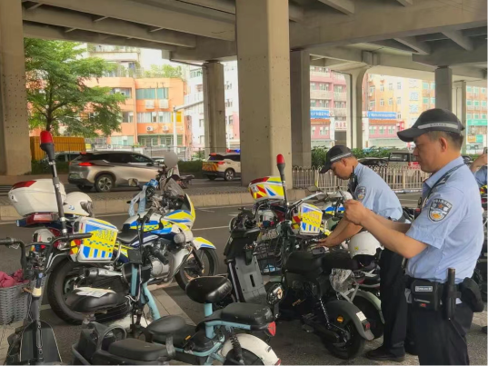 自2025年5月26日起,广州交警联合交通、城管等多部门及属地政府在重点地铁口周边开展交通环境联合整治行动,对骑行过来停放在地铁口的无牌、假牌电动自行车依法取证后予以扣留。