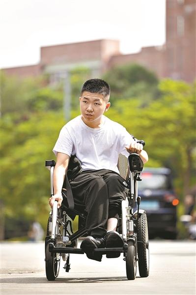 这位18岁的青年因为从小伴随脑性麻痹,导致四肢运动功能受损,日常出行需轮椅辅助,而手部力量也有所欠缺。从小到大,他都在特殊教育学校读书。今年,他顺利考上广东机电职业技术学院——一所非特殊教育类的普通大学,选择了自己喜欢的数字媒体技术专业。9月13日是他报到的日子。
