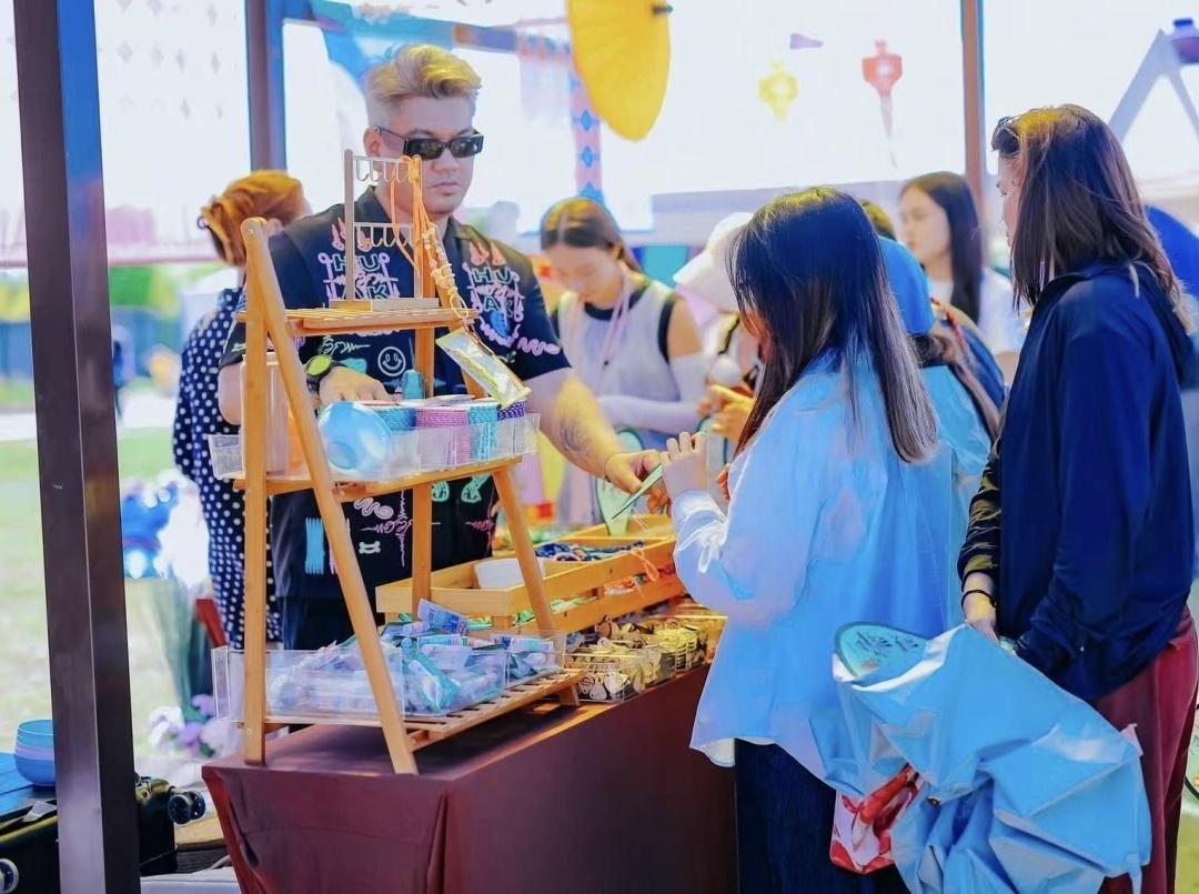 更令人惊艳的是,泰嗨巅峰音乐节不止于“听”,更构建了“食、逛、玩、乐”一体的沉浸式中泰文化体验场。“泰好吃”美食区里,泰式炒粉与广式肠粉拼成的双味套餐、泰式奶茶搭配广式凉茶的“冰火组合”,让味蕾在岭南与东南亚风味间自由穿梭;“泰好玩”互动区中,专业师傅提供的泰式马杀鸡缓解了乐迷的观演疲惫,身着泰式传统服饰的NPC穿梭现场,仿佛将曼谷街头的热闹复刻至南沙;“泰好逛”打卡区里,色彩艳丽的泰国花船、标志性的突突车与粤式市井元素交织,成为乐迷朋友圈的“爆款背景”;专属“泼水专区”更让大家在音浪与水花中,体验到原汁原味的泰国泼水节狂欢。这种深度文化融合的设计,不仅让音乐节成为“网红打卡地”,更让南沙成为“足不出国感受东南亚风情”的文旅新选择,来自惠州的乐迷曾女士表示,“看完演出还想去天后宫、蒲洲花园逛逛,好好感受南沙的海景与文化”。