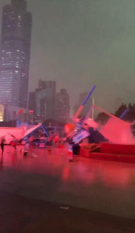 记者从天河区了解到,该画面确认在天河区天河城购物中心北广场,事发时间在17日晚5时左右。据了解,17日,天河城附近正在举行活动。17日晚5时许,天气突变,现场刮起大风,大风将活动现场布景板刮飞,工作人员现场开展应急处置,过程中无人伤亡,最终情况尚待确认。