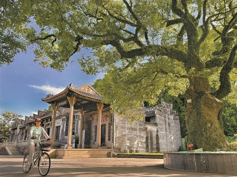 在广州市番禺区新造镇思贤村的思贤涌河堤,82株百年荔枝古树沿岸而立,枝繁叶茂,共同绘就了一幅生机盎然的生态画卷。