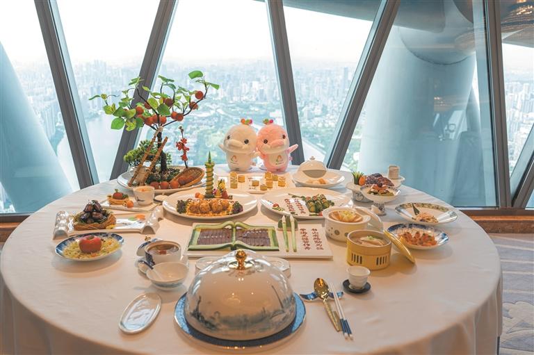 白天鹅宾馆以美食为媒助力全运,通过举办“白天鹅杯”赛事,围绕全运会主题推出系列创新菜式,让食客在品味美食的同时感受赛事氛围。广州塔晖粤轩中餐厅推出“云端粤宴,味动十五运”全运主题菜单,为食客带来“高空赏味+全运情怀”的双重体验。菜单中的“荷包鱿鱼”“山珍竹节高”“杏香澳带球”等菜式,从菜名到食材搭配都精心设计,让全运热情在云端上绽放。