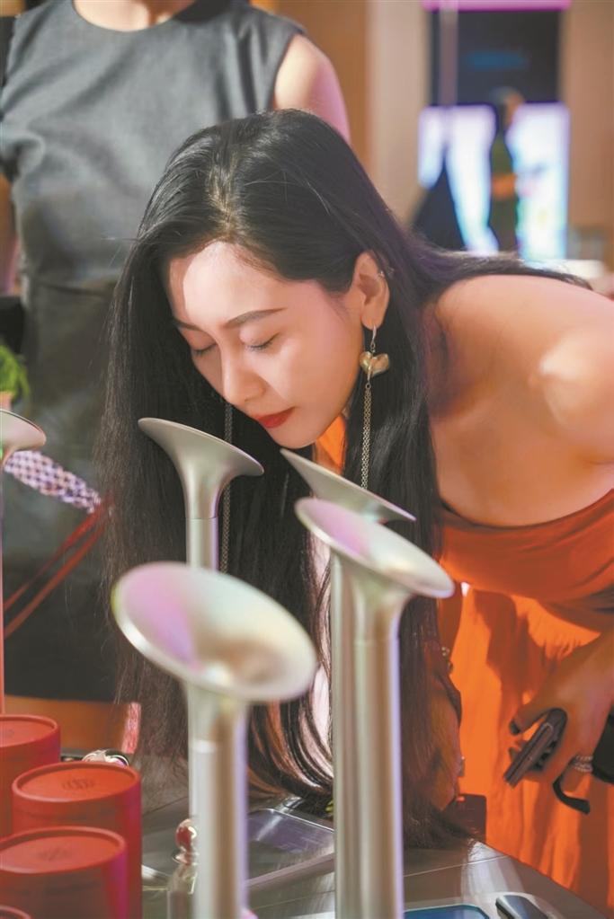 雪蕾香氛博物馆馆长翁浩聪介绍,此次发布的城市香味和运动香型结合了不同城市和运动项目的特点,“比如我们说到广州,可能会想到它是花城,想到这里的荔枝,所以这款香就是一种带着花果香的风格;又比如跳水,我们就融入了一些水的元素,海洋的元素。”