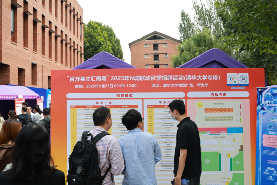 9月23日上午,由教育部、中共广东省委、广东省人民政府主办,中共广东省委人才办、广东省人力资源和社会保障厅、广东省教育厅、中共广州市委、广州市人民政府承办,中共广州市委人才办、广州市人力资源和社会保障局、中共广州市海珠区委、广州市海珠区人民政府实施的“百万英才汇南粤”2025年N城联动秋季招聘活动(清华大学专场)圆满收官。活动吸引了180余家广东省内知名企事业单位参与,释放招聘岗位8000余个。