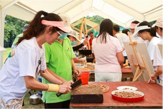 与此同时,在特色农产品和乡土美食展销区,还展出了增城迟菜心酱、丝苗米煲仔饭、二龙山泉猪烤肉、水培蔬菜、邓山云雾茶、何仙腊味、罗坑紫玉参薯、沙岗茶树菇等优质特色农产品和美食小吃。游客们穿梭于各个展位之间,或驻足了解,或细细品尝,或体验取榄仁、制作乌榄花生糖,在新鲜美味的乌榄角、热气腾腾的煲仔饭、香气四溢的本地烤肉等乡土美食中,用味蕾直接感受“小楼味道”的独特魅力,将丰收的喜悦实实在在地捧在手里、吃进心里。