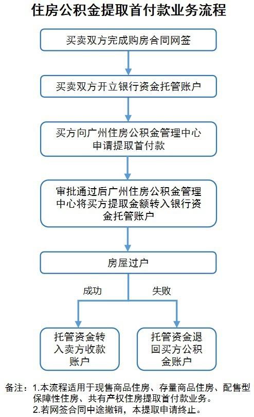 (2)买卖双方完成购房合同网签及开立银行资金托管账户后,可向广州住房公积金管理中心申请办理提取住房公积金支付购房首付款。