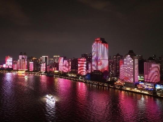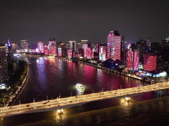 与对岸珠江新城CBD的璀璨楼宇灯光群