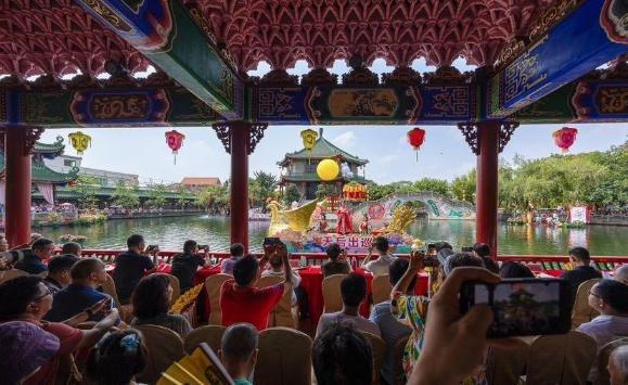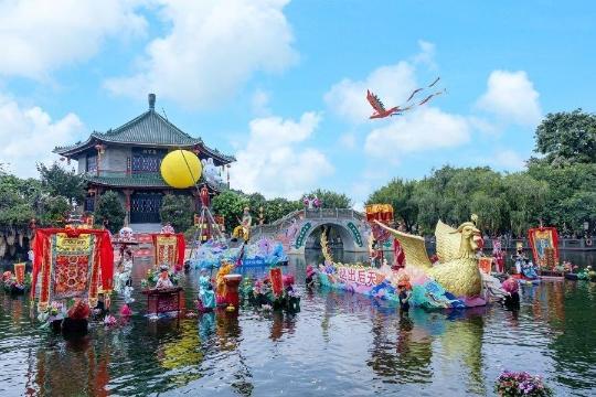 番禺水色、全运会主题花船巡游、6米“凤凰”凌空舞、13米高竿秀绝技……10月1日,第八届广州番禺水色旅游文化节在宝墨园精彩开幕。