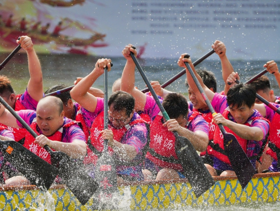 参赛队员们挥桨竞渡的身影,与岸边拔节生长的现代化建筑群相映,成为南沙新区活力的生动注脚。
