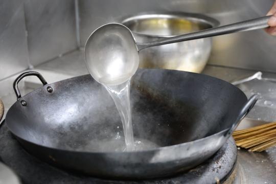 “这锅勺每隔两三年就损耗,要换一把,但我们用惯了这个规格、尺寸、材质打磨的锅勺,数十年如一日地用这规格的锅勺。这是专门请工匠师傅手打的,价格比机打的勺要贵得多,起码要翻倍。”权哥轻抚着手中的锅勺,眼中有一丝自豪。这锅勺是纯铁打造,大约一斤重。在粤菜厨房里,锅勺不仅仅是烹饪工具,更是开启厨师生涯的钥匙。