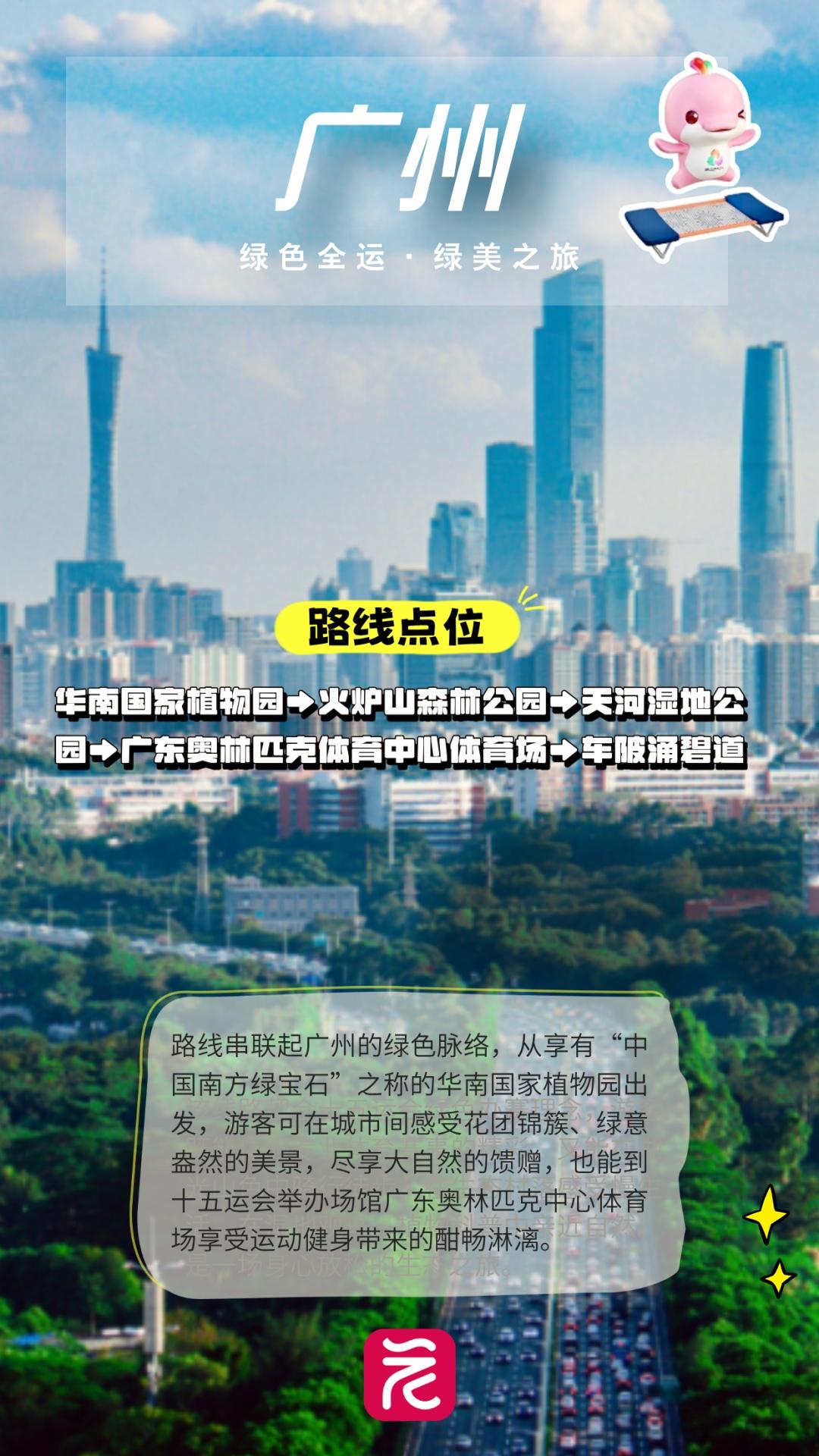 路线:华南国家植物园→火炉山森林公园→天河湿地公园→广东奥林匹克体育中心体育场→车陂涌碧道