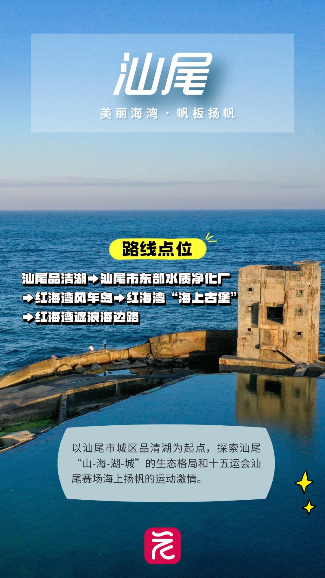 路线:汕尾品清湖→汕尾市东部水质净化厂→红海湾风车岛→红海湾“海上古堡”→红海湾遮浪海边路