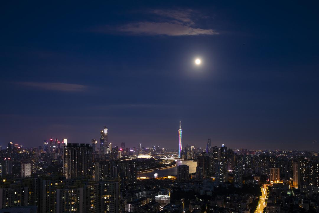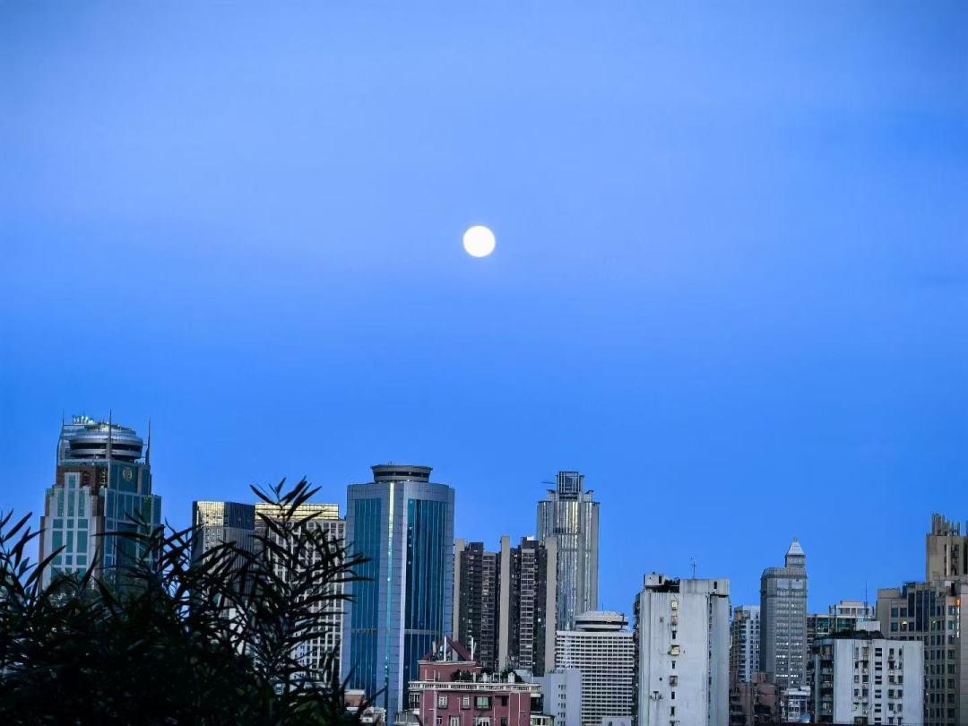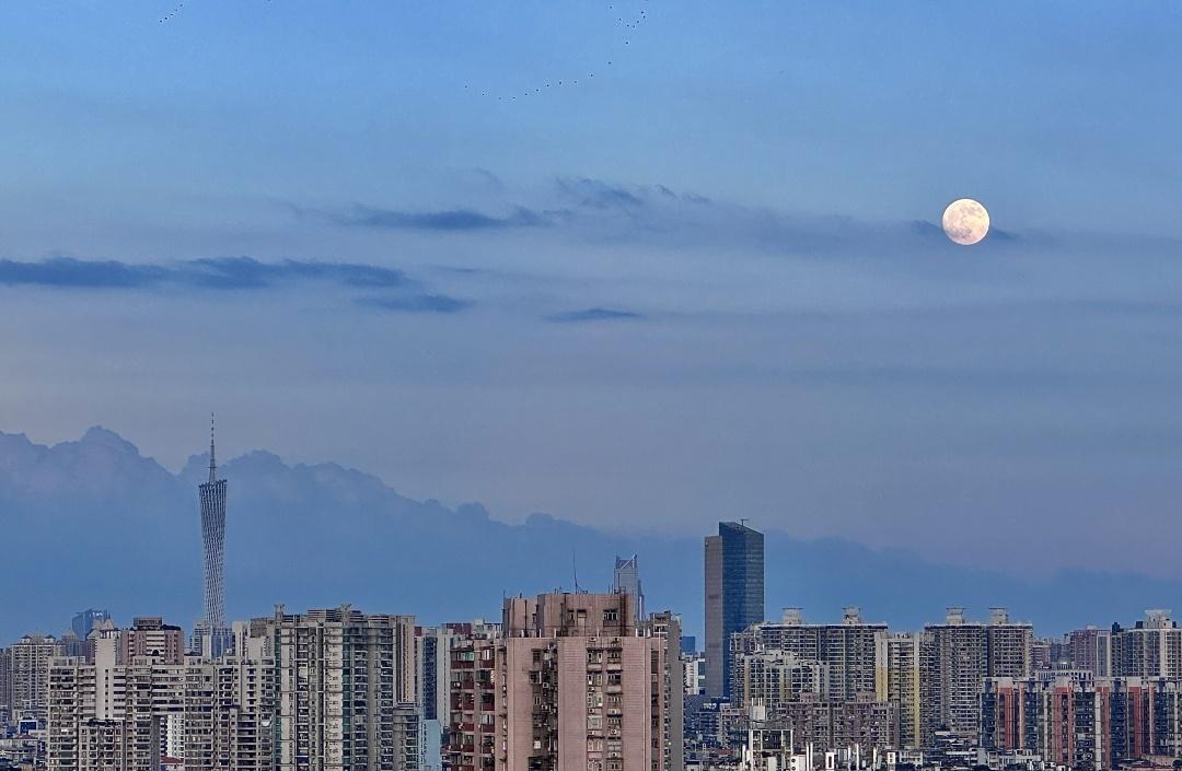 中秋佳节傍晚6时许,月亮早早出现在广州东边天空。天气也十分给力,中秋夜的广州天气晴朗,云层不多,可以看到洁白无瑕、亮度较高的明月。