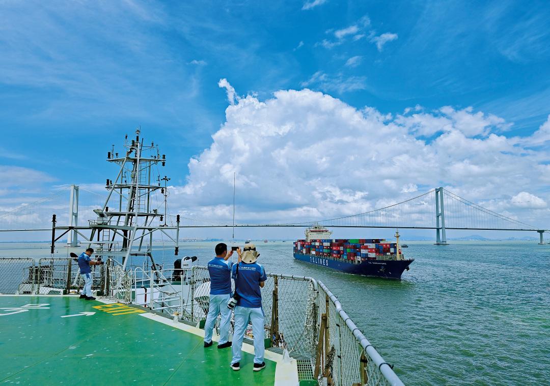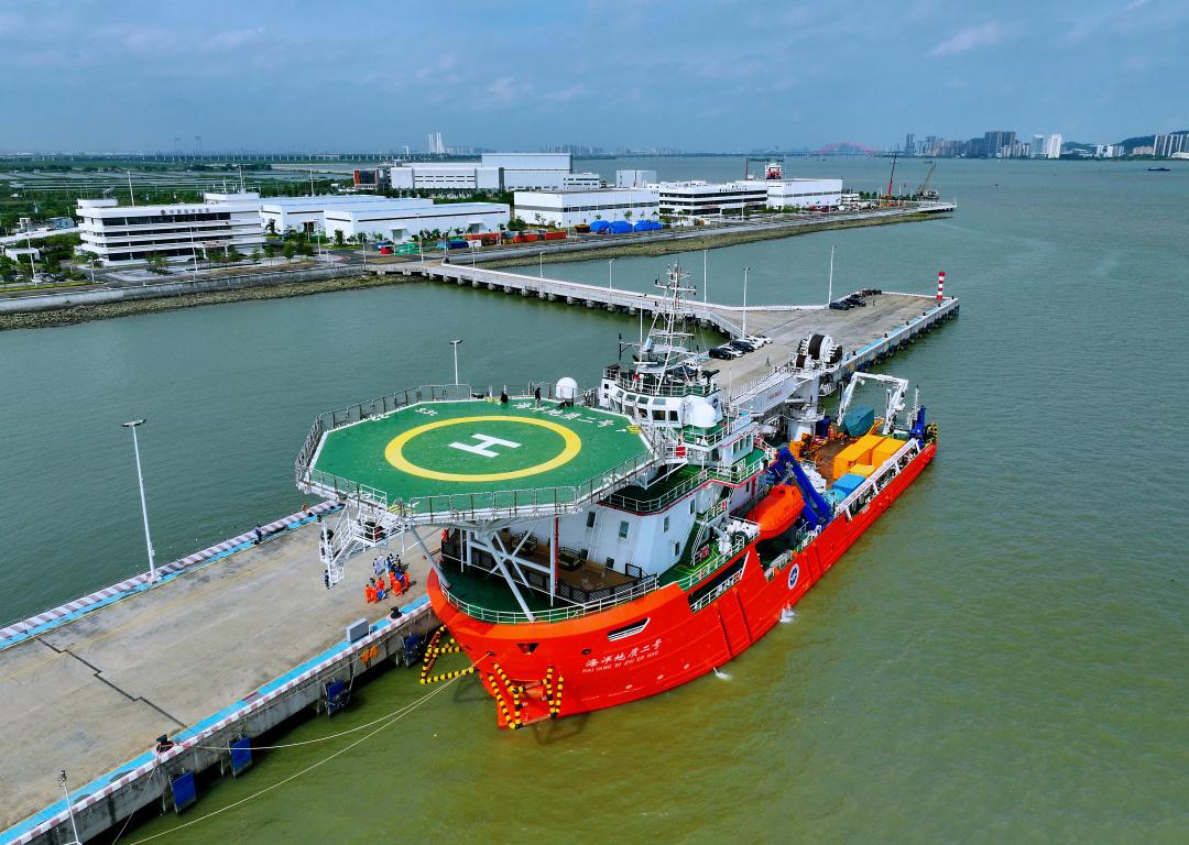 承担十五运和残特奥会深海“源火”采集任务的“海洋地质二号”科考船在广州南沙科考码头启航。