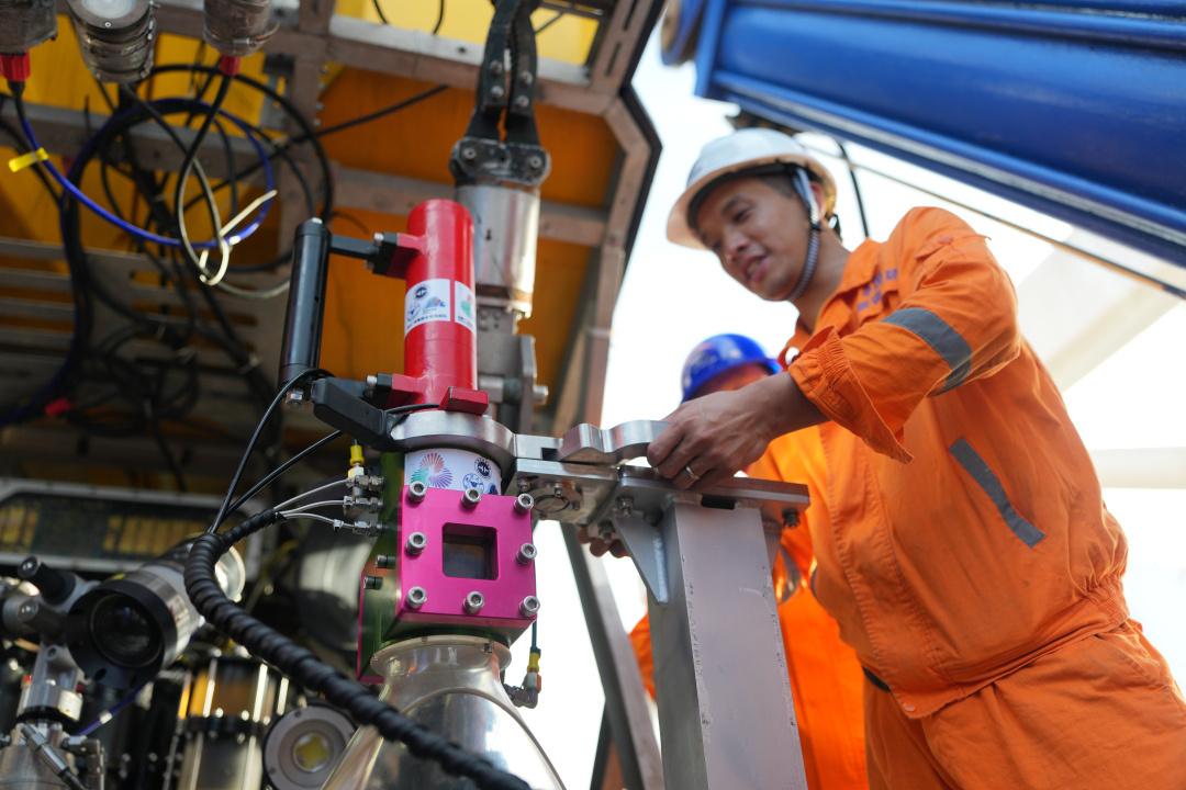16时48分,船上的光伏发电装置将太阳能转化为电能并传输到海底,在1522多米的深海成功将这股来自地球“蓝色血脉”中的气体引燃。