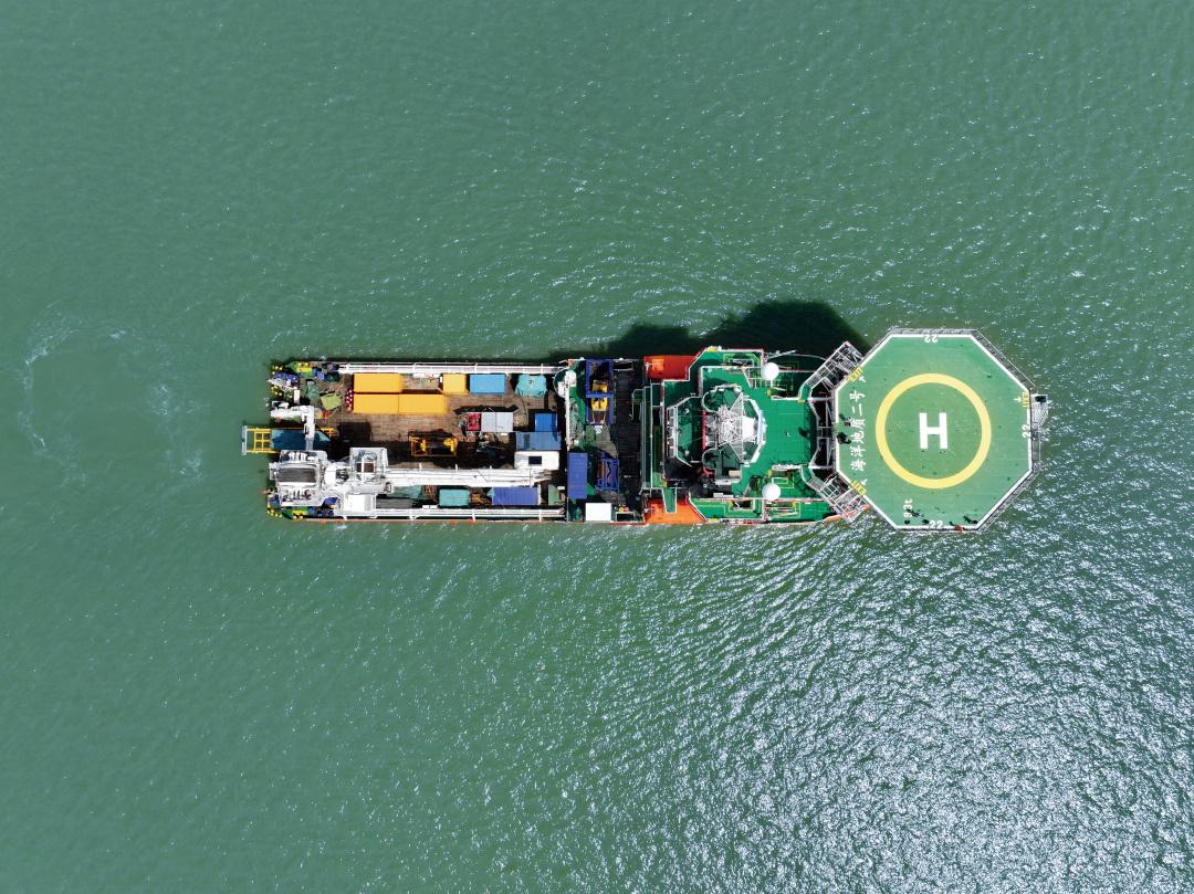 “海洋地质二号”科考船在南海北部海域“海马冷泉区”准备作业。