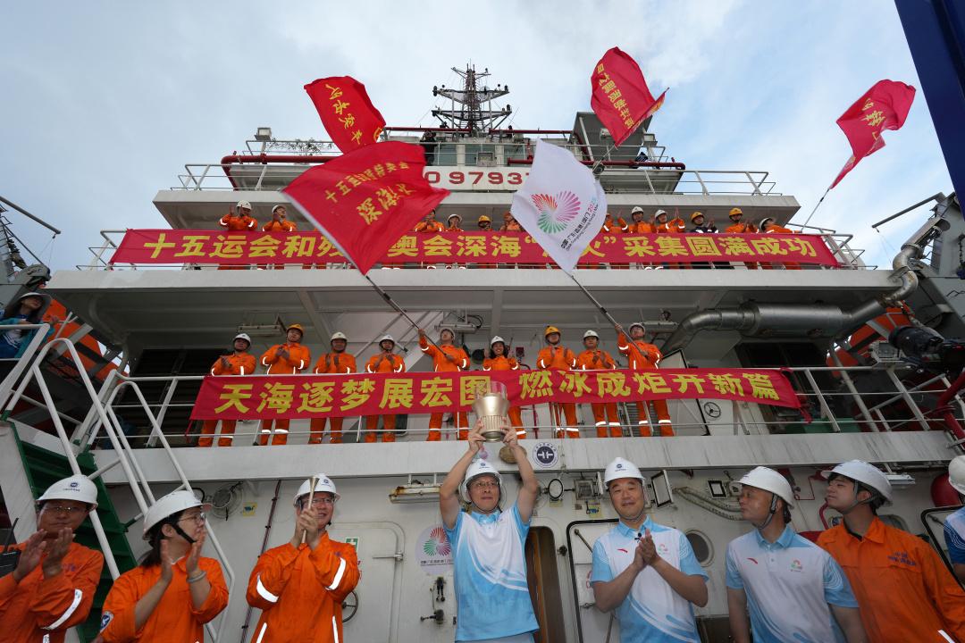 “源火”采集成功后,科研人员通过“海马”号在海底采集点位放置“十五运会与残特奥会‘源火’采集点”永久基点定位标,纪念这次具有开创性的“源火”采集行动。