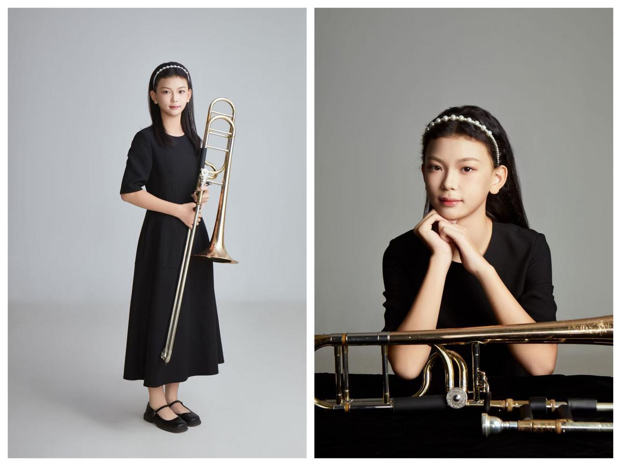 九岁那年,宁梓言初次接触长号,便被它低沉而富有磁性的音色深深吸引。命运的齿轮从此开始转动,她师从青年长号教师禤伟澄,开始了系统而专业的音乐学习。谈及恩师,宁梓言的感激之情溢于言表:“禤老师不仅教我如何运唇、如何控制气息这些基本功,更教会我如何去理解音乐背后的情感。她常说,‘技巧是为音乐服务的,心中有旋律,吹奏才有灵魂’。” 在禤伟澄老师的悉心指导下,宁梓言逐渐领悟到长号这门乐器的独特魅力与深度。