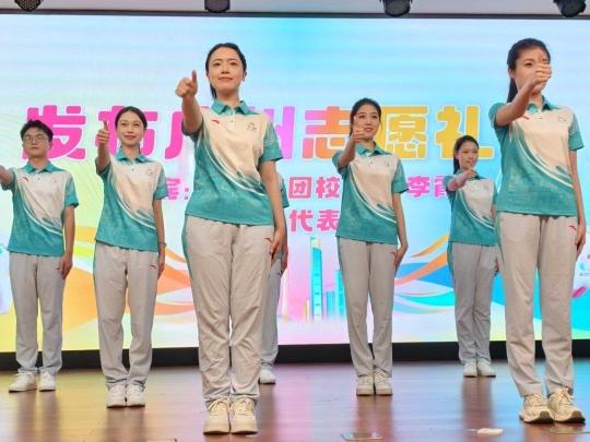 活动现场首次发布“广州志愿礼赞”。这一礼赞在广州亚运会“志愿礼”的基础上进行了优化升级,将在十五运会和残特奥会赛事及城市志愿服务场景上进行应用。“为你,更精彩——”在清亮的口号声中,现场志愿者们手抚心房、前伸点赞,通过统一规范的动作,展现广州志愿者的专业素养。