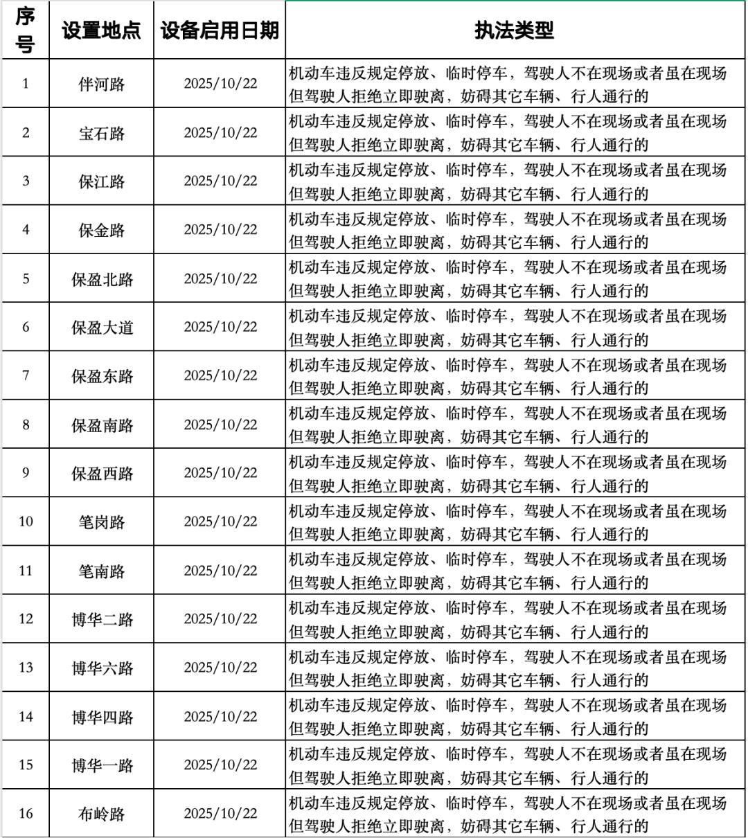 其中,26套交通技术监控设备将于2025年10月31日起依法对有交通违法行为的车辆进行拍摄取证执法。