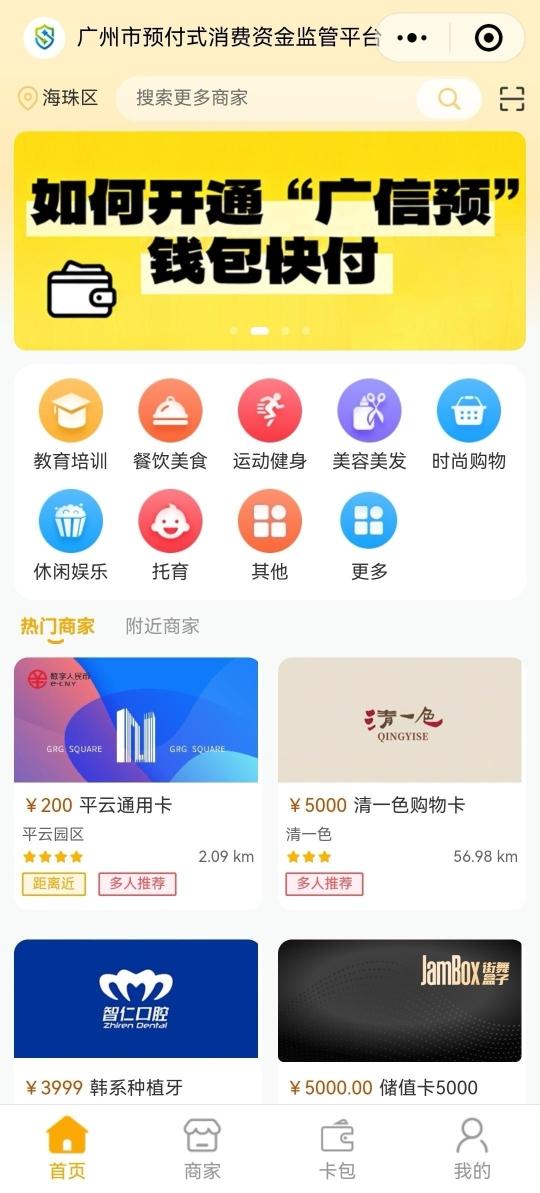 该平台依托数字人民币APP“元管家”预付资金管理模板进行开发,采用智能合约技术实现预付资金“一笔一清、实时清算”,覆盖资金发行、购买、核销等全流程闭环管理,设有微信小程序、“广信预”APP等使用形式。