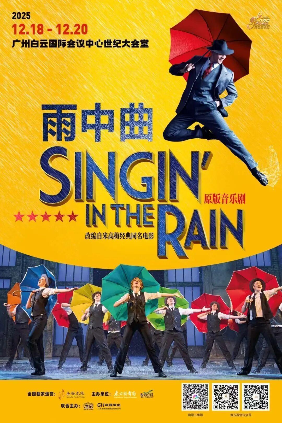 伦敦西区原版音乐剧《雨中曲》改编自经典的米高梅同名电影,收录了《早安》(Good Morning)、《逗他们笑》(Make'em Laugh)、《摩西假设》(Moses Supposes)和《雨中曲》(Singin’ in the Rain)等一系列经典歌曲。