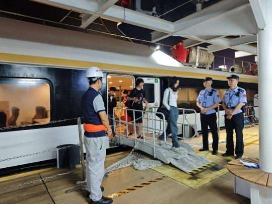 为保障夜航通关顺畅,洲头嘴边检站提前研判,制定“一船一策”通关方案,同步出台服务保障广交会专项工作实施方案。在口岸现场,边检部门开设广交会专用通道,还组建由英语、日语、韩语骨干民警组成的多语种服务队,在候检区设立咨询台,实时解答出入境通关政策问题;同时联合海关、口岸签证处、客运公司等部门建立“信息互通、快速响应”联动机制,遇有旅客证件紧急问题或特殊需求,可启动协同处置流程,最大限度减少通关等待时间。