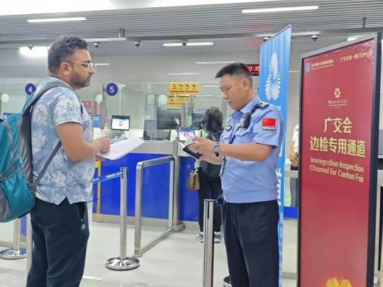 “我们依托琶洲口岸紧邻广交会展馆的‘近’优势,通过流程优化和服务前置,让客商‘通关零延误、体验更舒心’。”洲头嘴边检站执勤二队队长粟盛表示。
