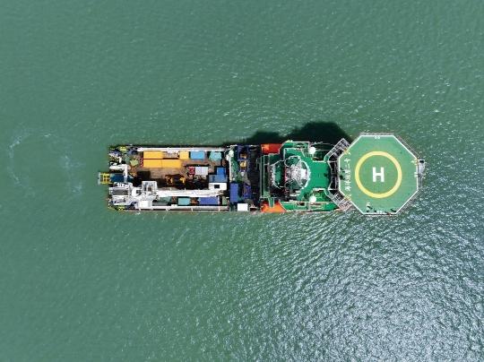“海洋地质二号”科考船在南海北部海域“海马冷泉区”准备作业。
