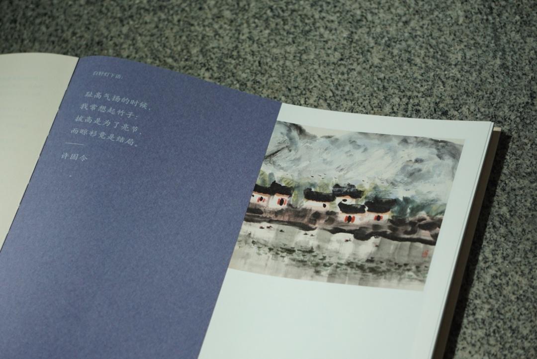 正因为许固令的艺术世界充满了多样性和创新性,因此,设计师洪卫在设计这本书时也是别出心裁——除了将艺术家的写生作品、花鸟画、山水画、脸谱画以及抽象画等进行分类编排外,全书更采用多种不同颜色、不同材质的纸张转换搭建起属于这本书独有的框架逻辑,然后再通过人工装订成册。这一打破常规的设计,使得图书与艺术家的风格相映成趣,俨然成为一份不可复制的“艺术品”。
