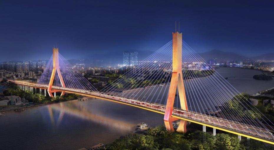 10月15日晚,鹤洞大桥照明提升工程顺利完成调试并正式亮灯。夜幕下,璀璨灯光将鹤洞大桥装点得熠熠生辉,远观宛若一条横跨珠江的“金光大道”,与江面倒影交相辉映,成为广州夜景又一亮丽景观,以焕然一新的姿态迎接全运盛会。