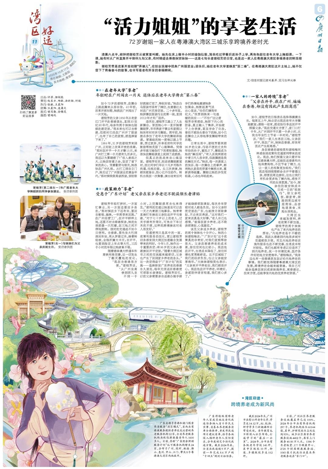 大湾区生活越发便利,养老政策不断加温,谢桂芳的两个妹妹也产生了来内地养老的想法。“内地养老是个不错的选择。现在从香港到内地很多城市交通都很方便。而且内地的养老设施和服务也在不断完善,生活成本相对较低。我们也都有考虑以后退休了到内地养老,找一个环境优美、医疗条件好的地方安度晚年。”谢桂梅说,“我身边也有一些香港朋友在讨论内地养老的事情。我们都觉得随着粤港澳大湾区的发展,跨境养老会越来越普遍。我自己可能会选择在深圳或者珠海养老,离香港近,往来方便,还能享受内地的优质养老资源。”