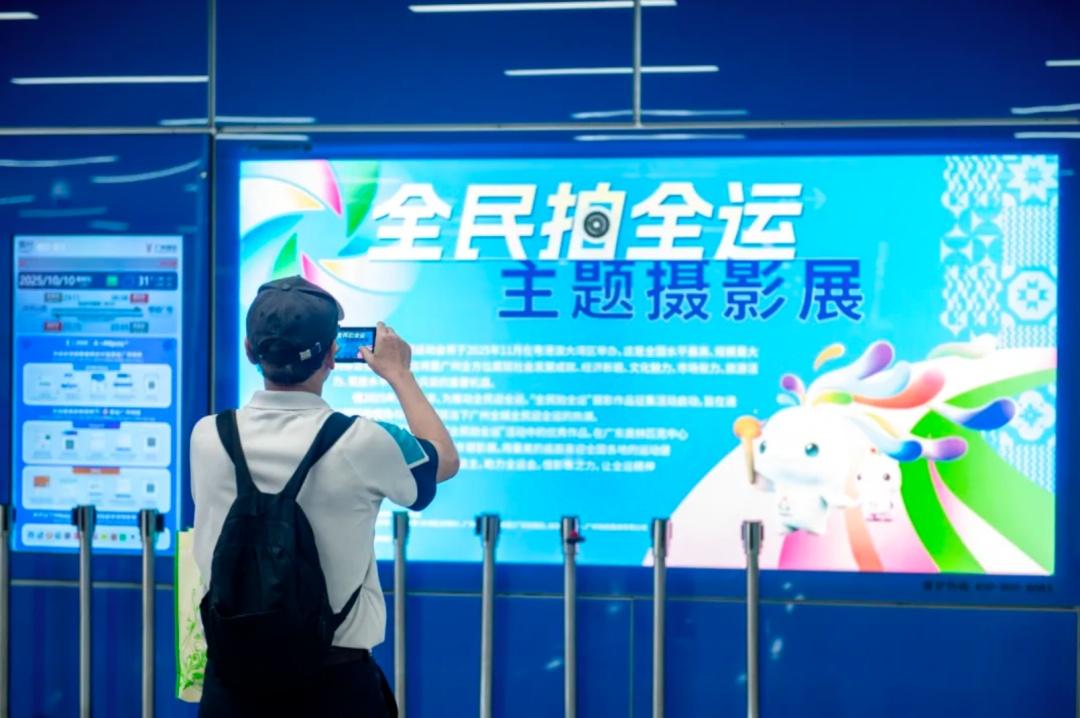 作为地铁四号线与二十一号线的换乘站,黄村站毗邻十五运会开幕式场馆广东省奥林匹克体育中心。除了“全民拍全运”主题摄影展,黄村地铁站还将全运会口号、会徽、吉祥物与广州历史文化特色相融合,精心打造了“全运赛事项目”“粤韵全运”“搭地铁看全运”“羊城八景”“食在广州”等主题展区,吸引不少市民在乘坐地铁之余观展打卡。