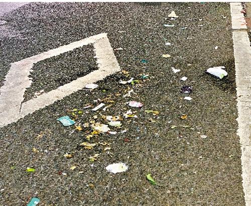 记者走访淘金路、淘金街、淘金西街、麓苑路等路段,发现上午沿路地面较为整洁,但从下午到晚上,地面开始出现一些垃圾。有的是行人随意丢弃的纸巾、瓶罐,有的则是居民从家里清理出来的生活垃圾,也有沿路商户撒落地面的废弃物品。