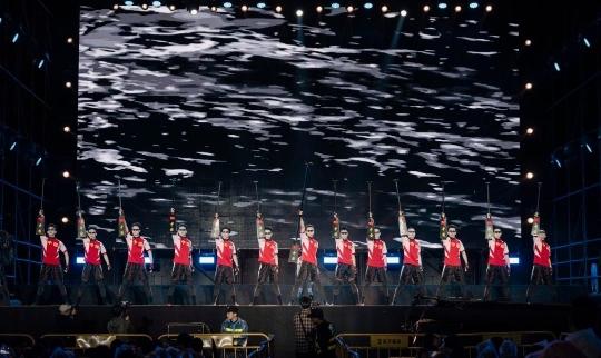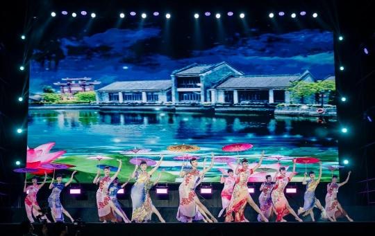 舞蹈类节目同样亮点纷呈。女子群舞《西关丽影》以柔美舞姿还原广州西关的市井风情,旗袍元素与伞舞细节尽显岭南女子的温婉雅致;《平湖秋月》将广东传统民乐意境融入舞蹈,水袖翻飞间勾勒出江南与岭南共通的水乡诗意,实现两地文化审美巧妙对话。男子群舞《潮涌南浔》则以力量感十足的男子群舞,隐喻大湾区与南浔在时代浪潮中携手共进。梁绮琦再度登场,与众演员们演绎舞蹈《织金彩瓷》,细腻灵动的动作让广彩文化在舞台上活灵活现;李博、万乘齐、梁丽红一曲《大湾区的风》将大湾区的开放包容与发展活力融入歌声。