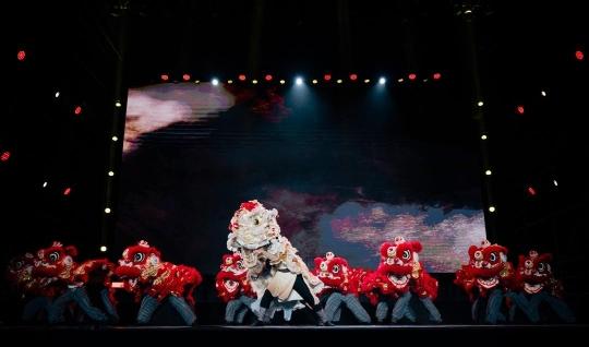 广州歌舞剧院荣典首席舞者依力凡・吾买尔、庞冠宇领衔演绎《醒・狮》选段,两人凭借深厚的舞蹈功底,以刚柔并济的动作展现南狮的威猛与灵动——狮头摆动时的细腻传神、腾挪跳跃时的力量爆发,传递出岭南人不屈不挠的精神。