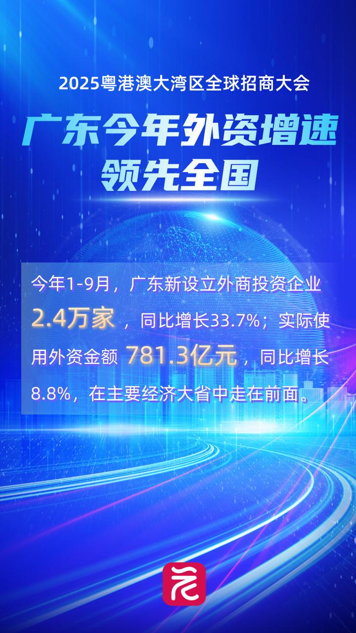 今年广东外资增速领先全国。今年1-9月,广东新设立外商投资企业2.4万家,同比增长33.7%;实际使用外资金额781.3亿元,同比增长8.8%,在主要经济大省中走在前面。