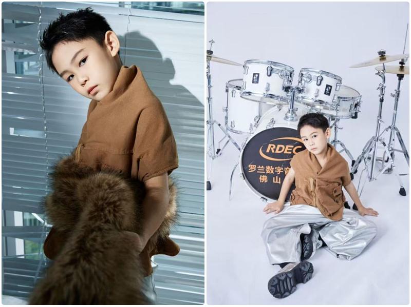 今年9岁的刘蔚明,与架子鼓相伴已走过七年时光。这段鼓缘始于孩提时代——三岁那年,他得垫上好几层坐垫才勉强够到踩锤,但那稚嫩而执着的敲击声中,已透露出对节奏天生的感知与炽热的喜爱。