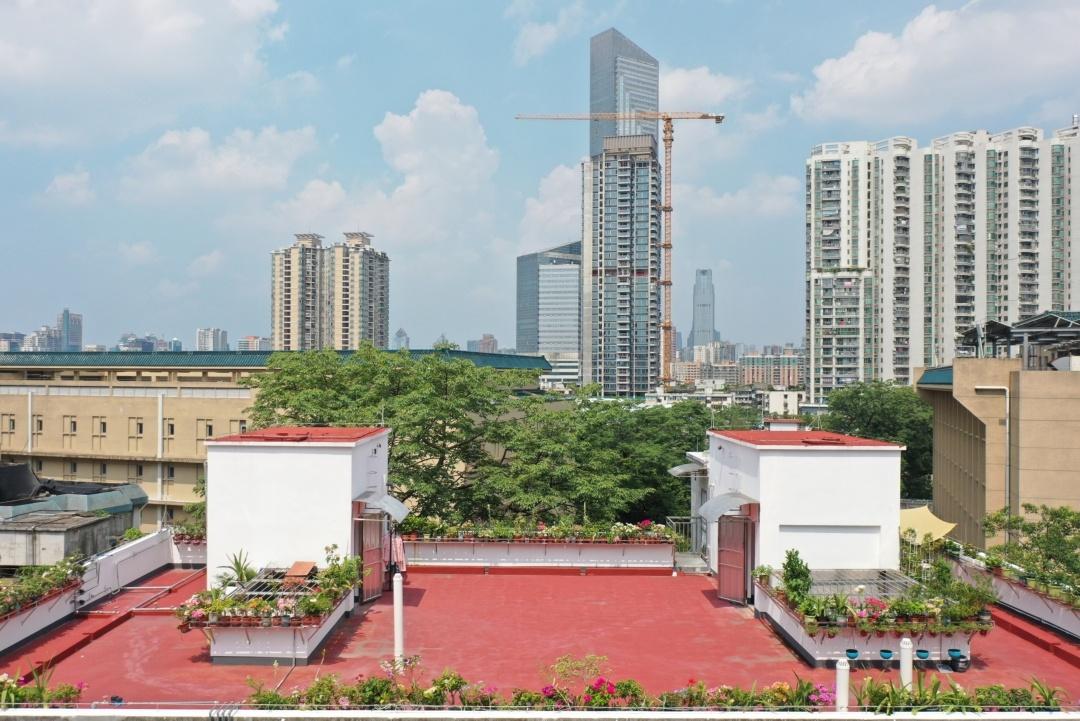 通过实施“第五立面”精细化改造提升,社区创新推出“屋顶+”复合空间模式,积极推行立体绿化和盆栽种植,增强社区碳汇能力,构建“一个漫步区、一个休闲区、一个晾晒区”的“三个一”功能布局,形成层次丰富的空中生态景观。