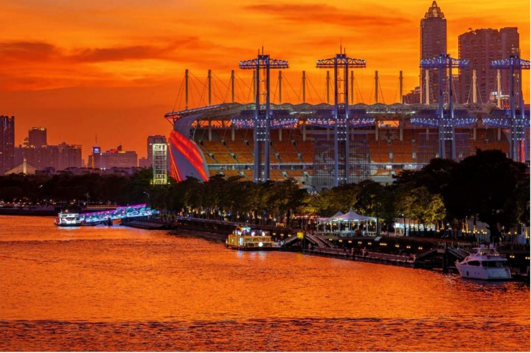 “海丝商道专线”珠江游,则自会展中心码头单程至西堤码头,中途停靠海心沙西区码头、天字码头。除沿途景点外,正值夕阳西下,晚霞映照珠江,波光粼粼,游船之上,即可“打卡”珠水夕照的绝美画卷,感受“落日熔金,暮云合璧”的诗意美景。