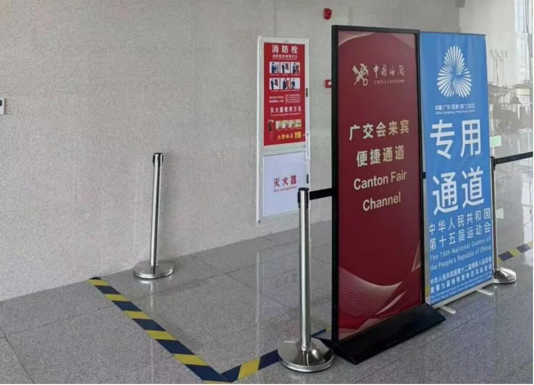 广州市港务局指导南沙客运港聚焦参展商、采购商跨区域出行核心需求,联合边检、海关、公安等多部门升级服务保障体系,全力打造通关“零等待”出行体验。南沙客运港创新动态专用通道机制,充分利用候检大厅空间实施提前分流,实现“进港即安检、安检即通关”的高效衔接。同时,针对客流集中特点同步强化配套保障:运力上加密香港国际机场、香港中港城等热门航线频次;服务上在候船大厅设广交会客商专用值机柜台,安排专员提供购票指引、行李托运等全流程服务。