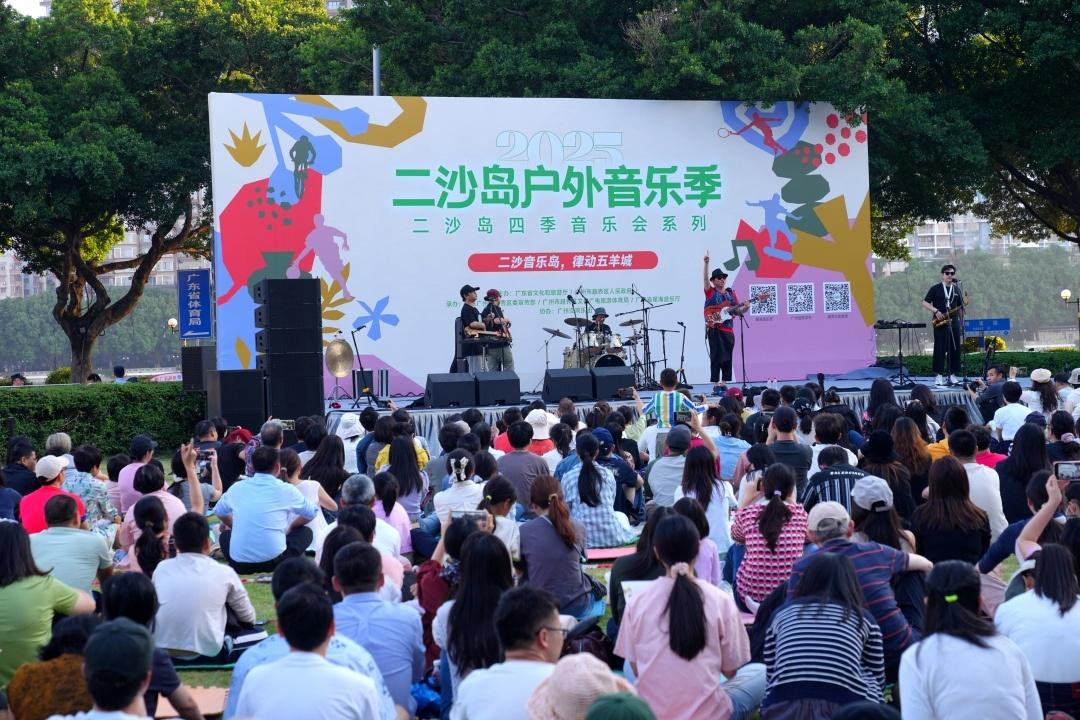 10月26日下午,在二沙岛海山街1号草坪,躁动的鼓点和汹涌的声浪点燃了2025二沙岛户外音乐季的首场音乐会。