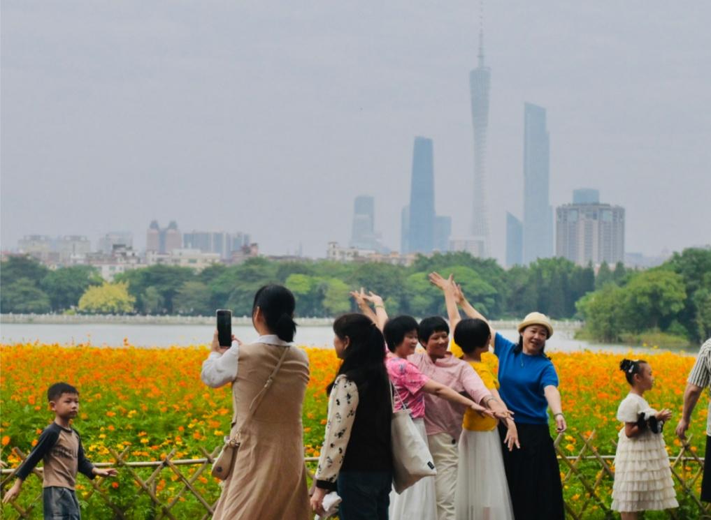 10月26日,海珠湖现场15000㎡的硫华菊花海把秋日氛围感拉满,市民游客纷纷前来打卡。图/广州日报新花城记者:廖雪明