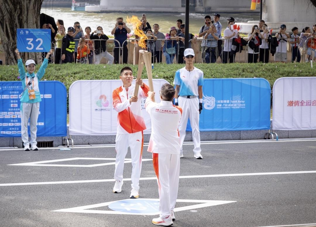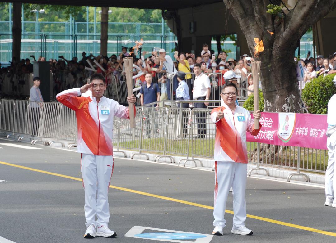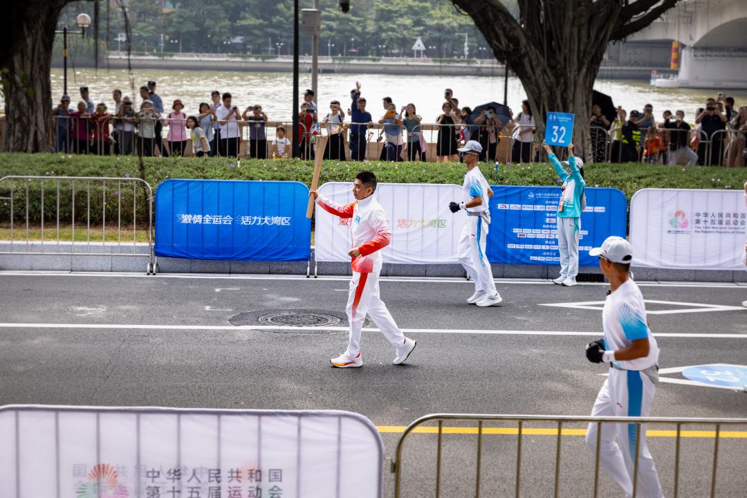 11月2日,第十五届全国运动会火炬传递在香港、澳门、广州、深圳4个城市同步举行。当天上午,广州市增城区荔城消防救援站政治指导员周维亮作为广州赛区第32棒火炬手亮相二沙岛。