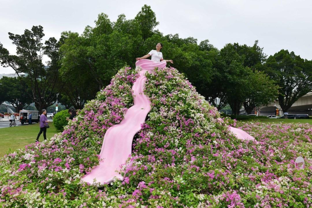 ▏在二沙岛宏城公园,超大蝴蝶结搭配垂落的碎花“裙摆”,成为网红打卡地……