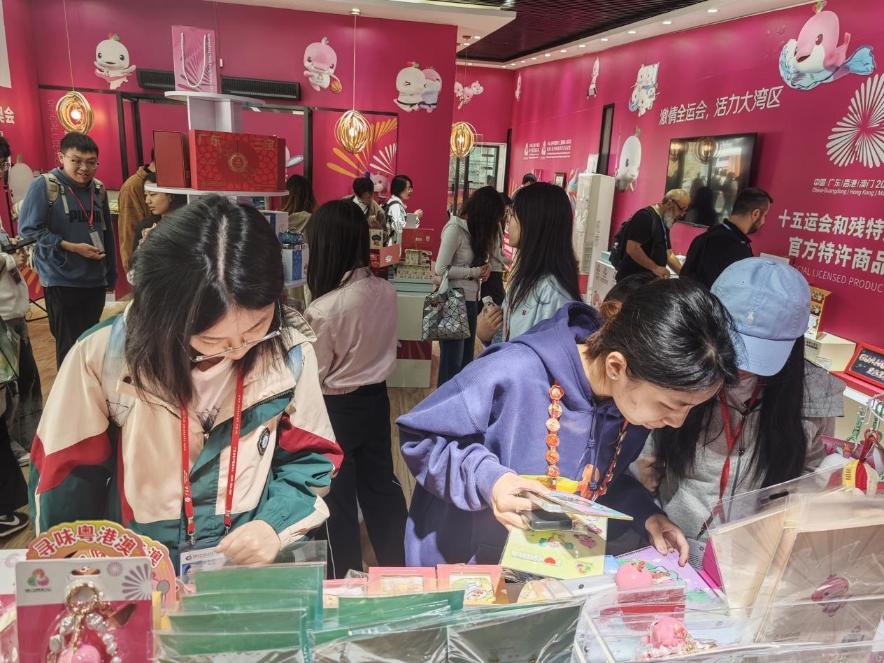 近期,活泼可爱的吉祥物“喜洋洋”“乐融融”雕塑及宣传装置遍布街头,其中也蕴含着丰富的版权故事。同学们走进广交会场馆内的十五运会特许商品零售店,在欣赏设计精美、趣味横生的文创商品之余,通过特许商品上的版权标识和防伪措施,了解到从设计创作到生产销售等相关流程的版权管理,感受到大型赛事中版权保护的细致入微。