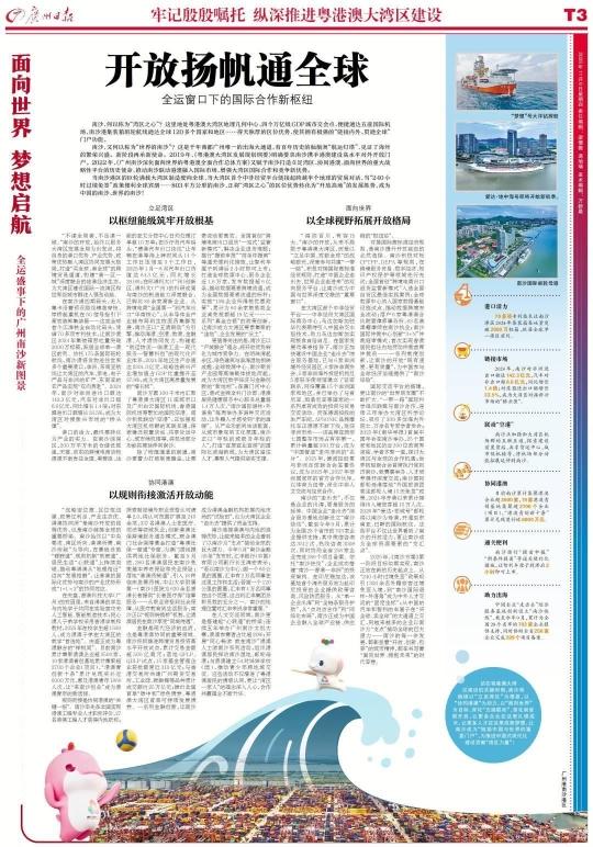 南沙,又何以称为“世界的南沙”?这是千年商都广州唯一的出海大通道,有百年历史的舢舨洲“航运灯塔”,见证了海丝的繁荣兴盛。新阶段再承新使命。2019年,《粤港澳大湾区发展规划纲要》明确要求南沙携手港澳建设高水平对外开放门户。2022年,《广州南沙深化面向世界的粤港澳全面合作总体方案》又赋予南沙打造立足湾区、协同港澳、面向世界的重大战略性平台的历史使命,推动南沙联动港澳融入国际市场,增强大湾区国际合作和竞争新优势。