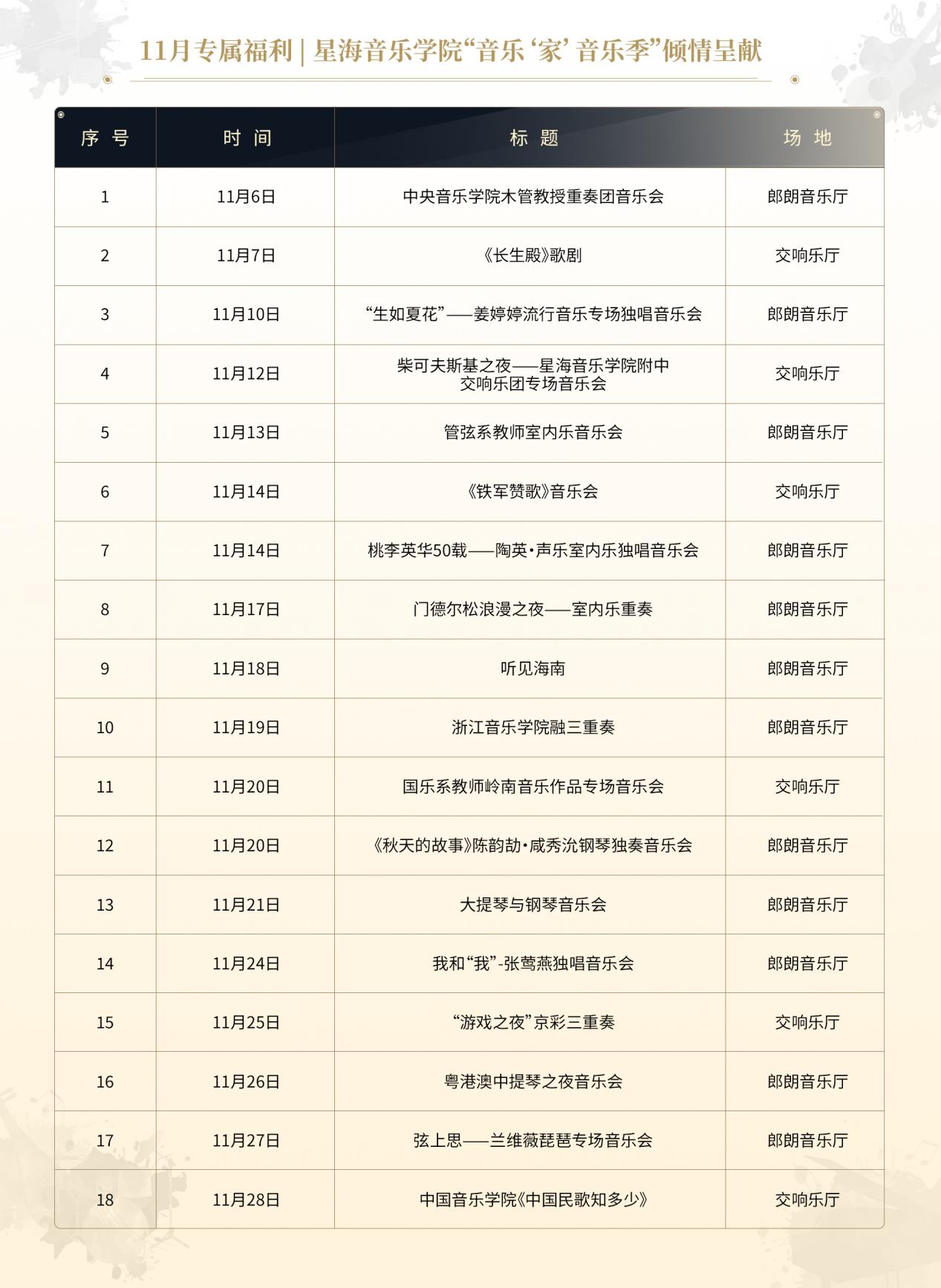 据悉,本次系列活动特邀中央音乐学院、武汉音乐学院等知名院校教授参与大师课教学,课程涵盖管乐、弦乐、钢琴、声乐等多个专业领域。音乐会板块则精心策划18场精品演出,包括中央音乐学院木管教授重奏团音乐会、歌剧《长生殿》及星海音乐学院附中“柴可夫斯基之夜”交响乐团专场等。